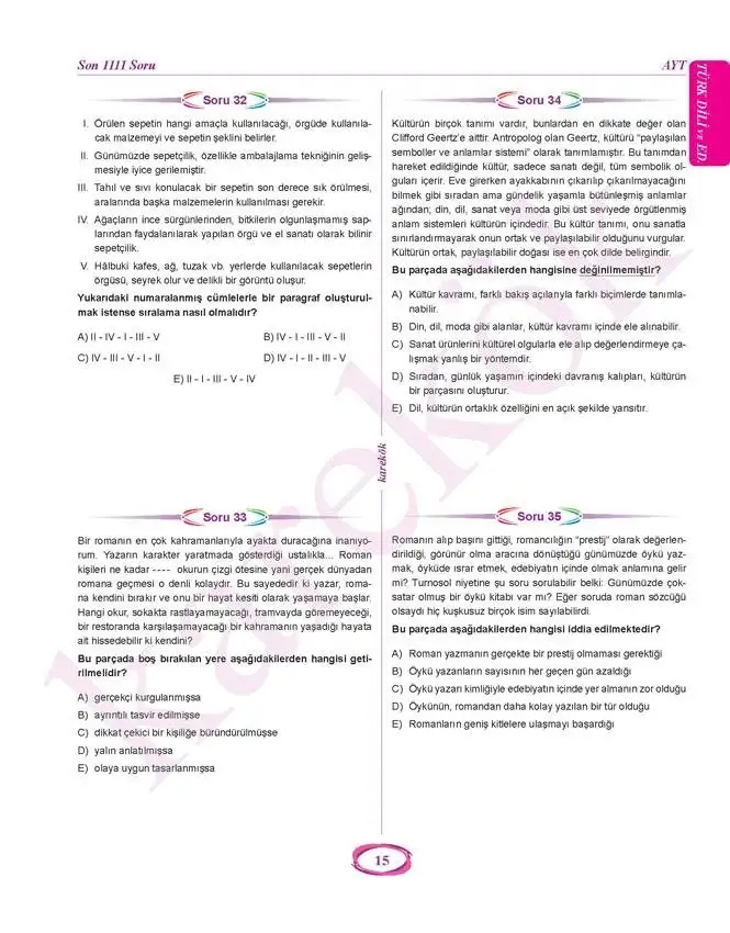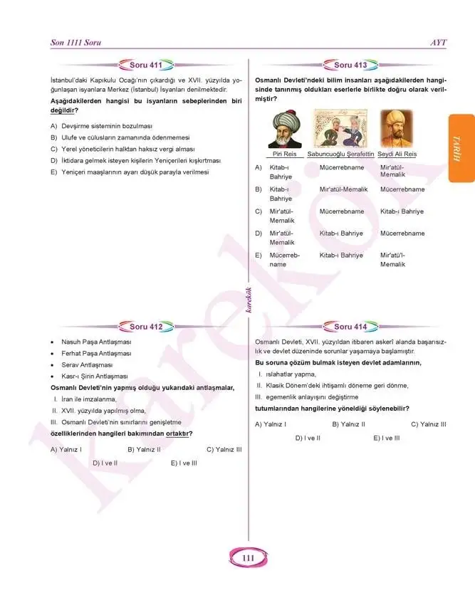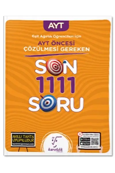 Karekök Yayınlarının 2021-2022 Eğitim yılı için hazırladığı 2021 AYT Öncesi Çözülmesi Gereken Eşit Ağırlık Son 1111 Soru Bankasıdır.
