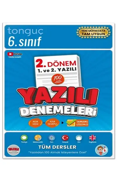 6. Sınıf Yazılı Denemeleri 2. Dönem 1. ve 2. Yazılı kitabı; Türkçe, Matematik, Fen Bilimleri, Sosyal Bilgiler, Din Kültürü ve Ahlak Bilgisi, İngilizce gibi tüm branşların 2. dönem 1. ve 2. yazılı sınavlarına yönelik, yeni MEB Maarif Modeli müfredatına uygun yazılı denemeleri içerir. Her dersten birden fazla yazılı provası ile tüm kazanımları eksiksiz pekiştirmen amaçlanmıştır.