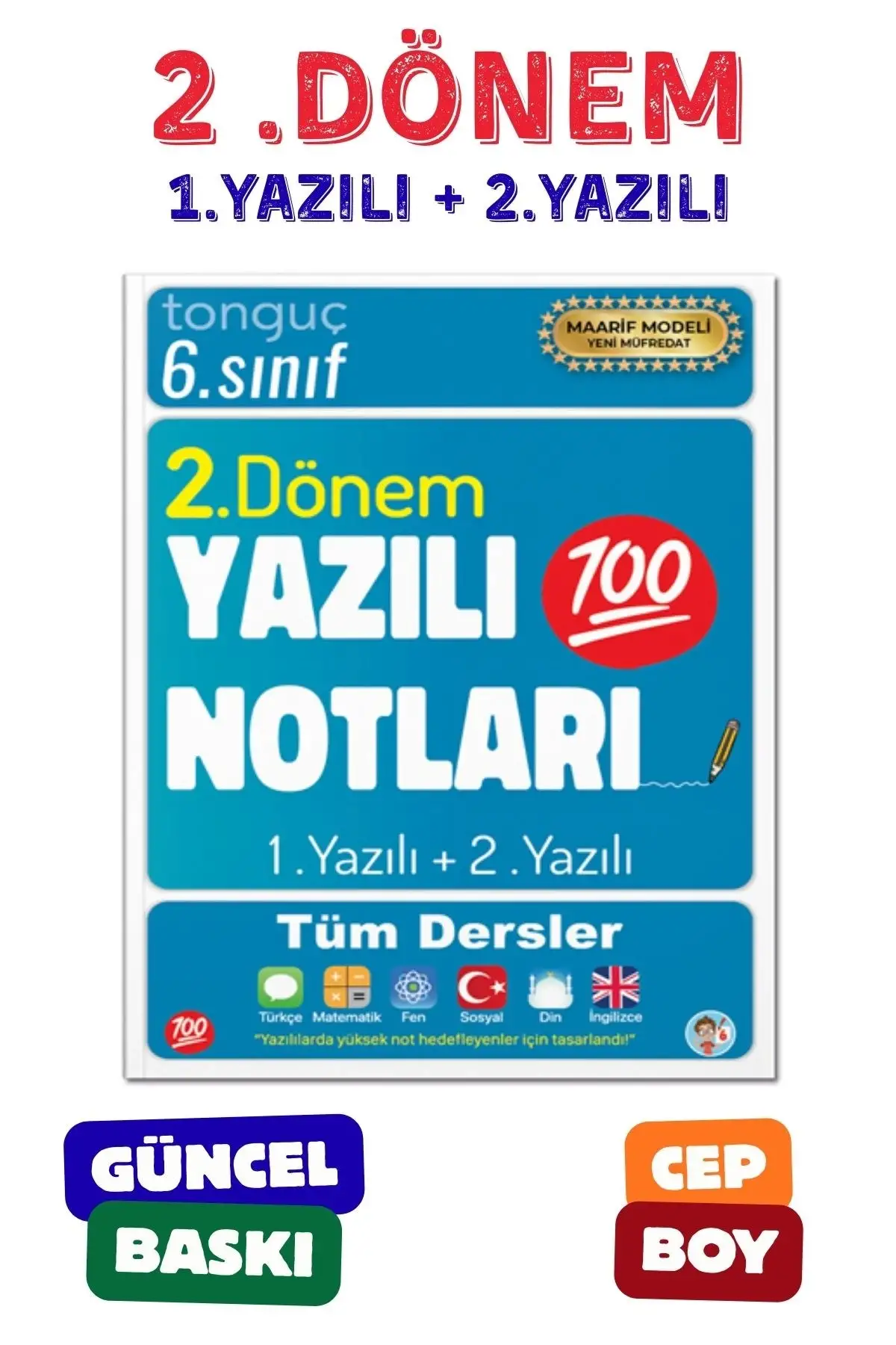 “6. Sınıf Yazılı Notları 2. Dönem 1 ve 2. Yazılı” kitabı; Türkçe, Matematik, Fen Bilimleri, İngilizce, Sosyal Bilgiler, Din Kültürü ve Ahlak Bilgisi gibi tüm branşları kapsayan konu anlatımlı yazılı hazırlık kaynağıdır. Her ders için 2. dönem 1. ve 2. yazılı sınavlarına yönelik konu özetleri ve pratik ipuçları içerir.