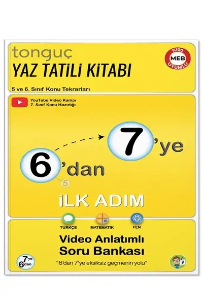 6'dan 7'ye Yaz Tatili Kitabı İlk Adım, 7. sınıfa geçen öğrencilerin yeni sınıfına sağlam bir temelle başlaması için 5 ve 6. sınıf konularını tekrar etmesini sağlayan bir yaz tatili hazırlık kitabıdır.