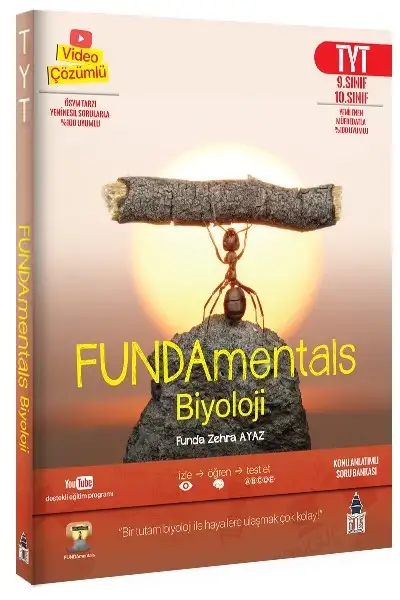 Şimdi de bu kitapla 24 yıllık tecrübe ve bilgi birikimimi sizlere aktarmaya çalışıyorum. Kitabımı, yeni Biyoloji Öğretim Programına, ÖSYM‘nin yeni sınav sistemine ve bu sınav sisteminde farklılaşan soru tiplerine uygun olarak hazırladım. Kitabımdaki her konunun anlatım videosunu ve o konuyla ilgili soru çözüm videolarını “FUNDAmentals Biyoloji” Youtube kanalımda bulabilirsiniz. Evet benim derslerim herkese ücretsiz. Size düşen ise sadece hafızaya atmak ve beni başarılarınızdan haberdar etmek...
