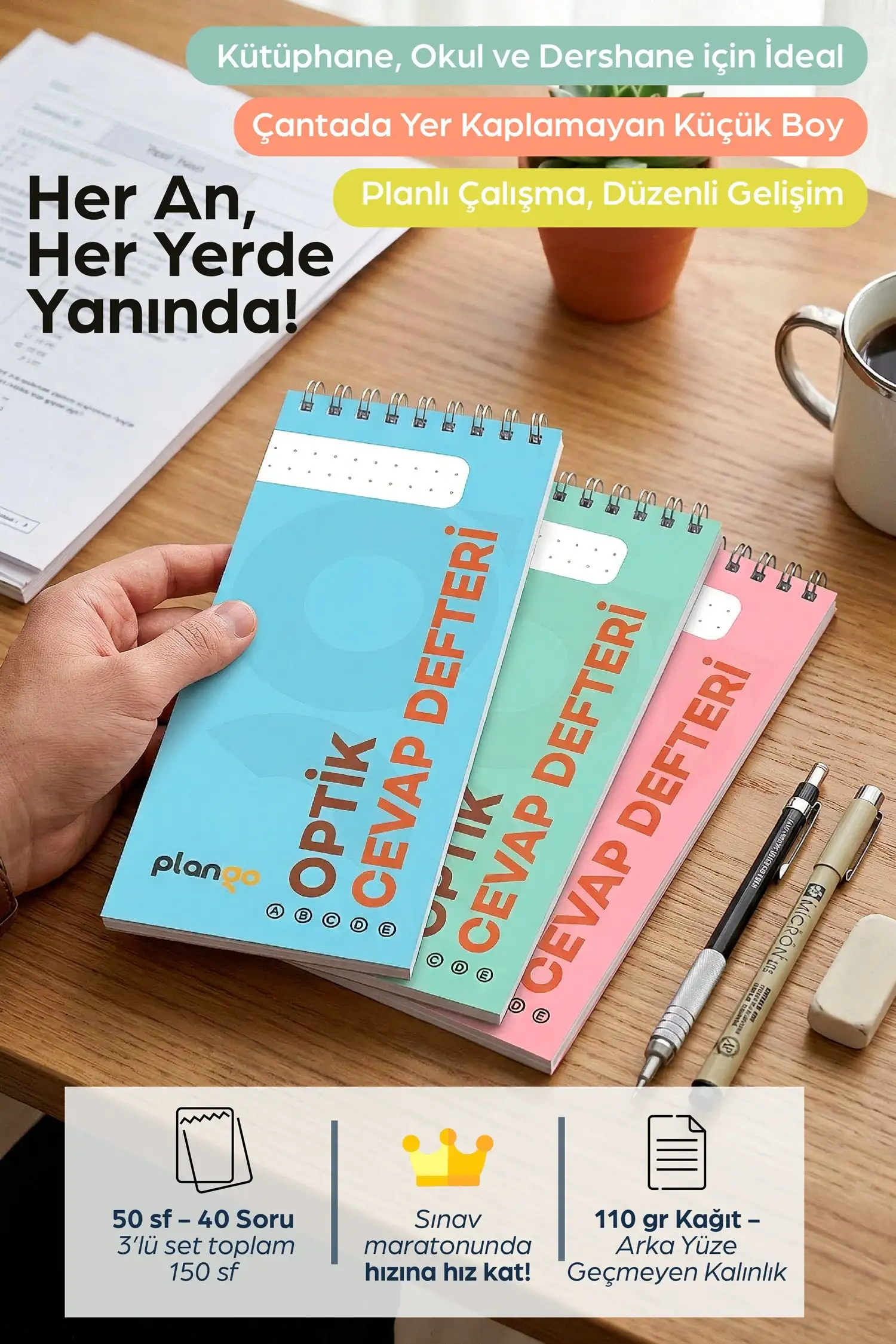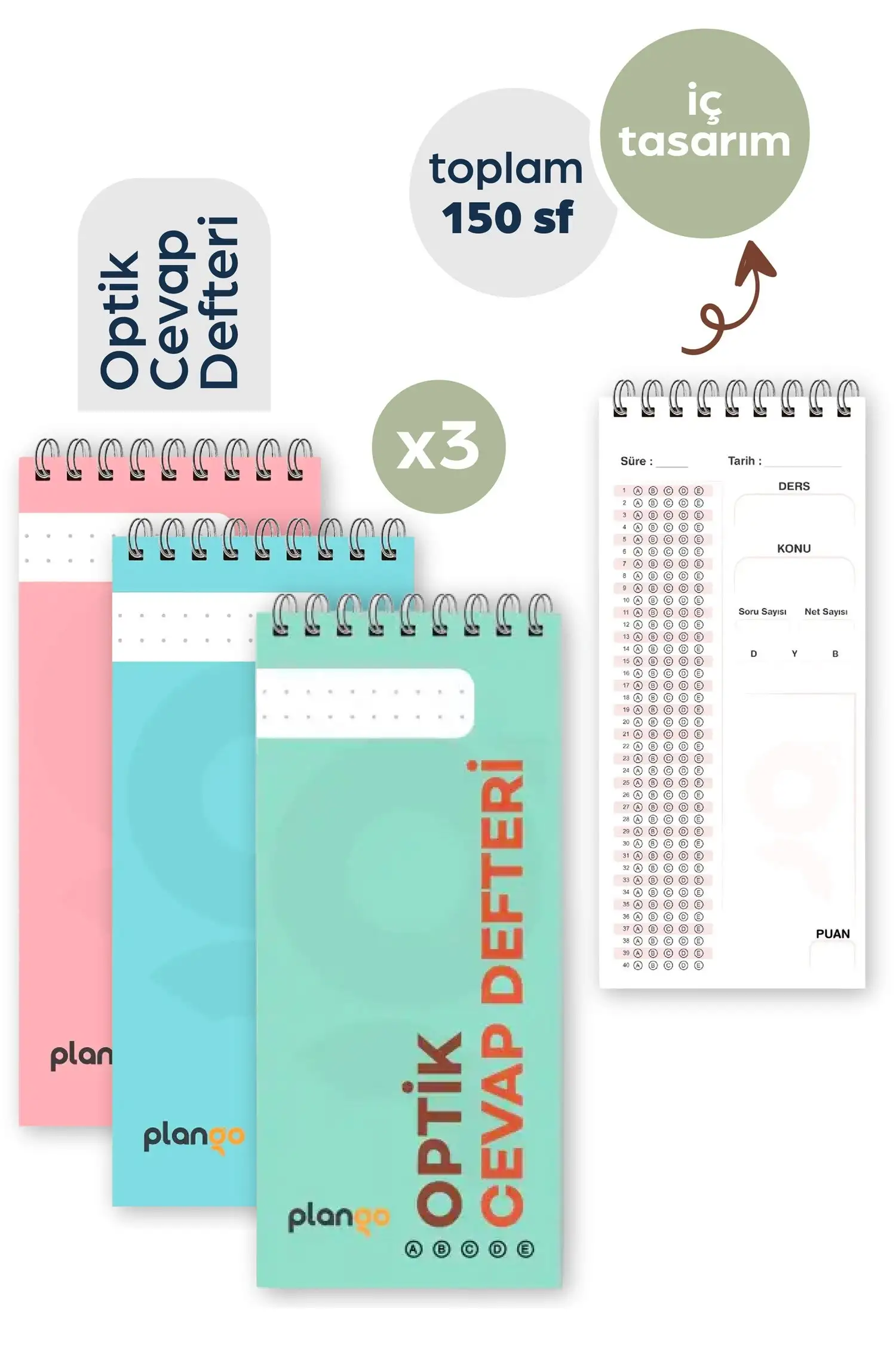 Plango Optik Cevap Defteri 50 Yapraklık 3 defter halinde gönderilmektedir.