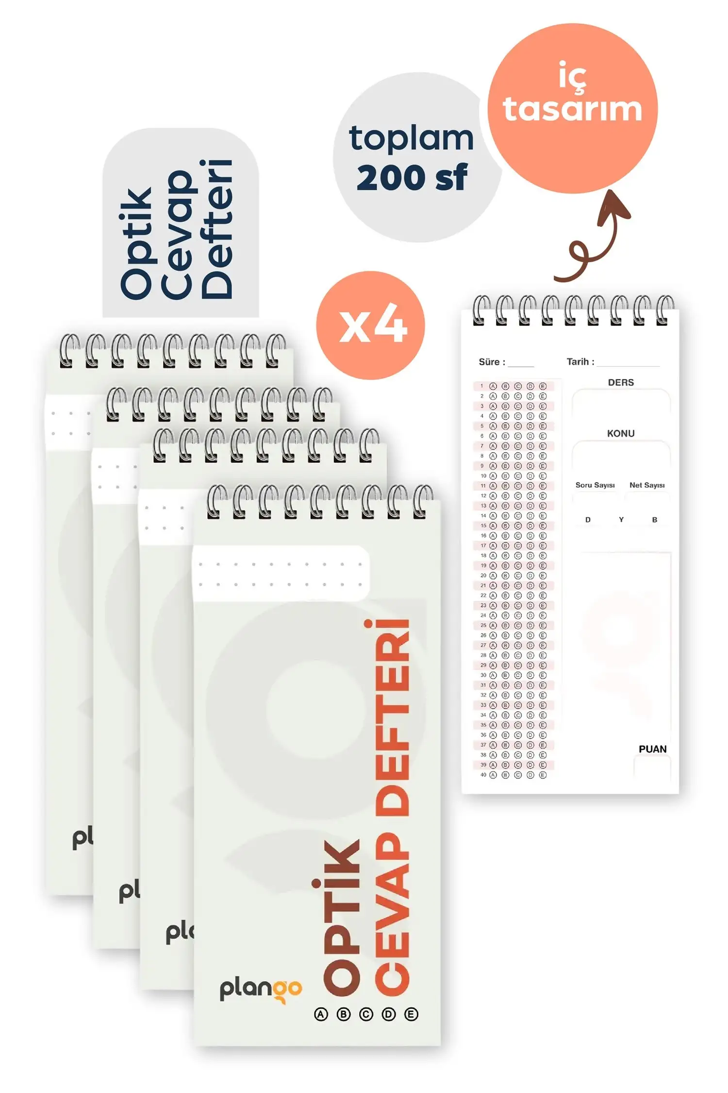 PLANGO Optik Cevap Defteri - KUM BEYAZI ( 4 Adet - 200 Sayfa)