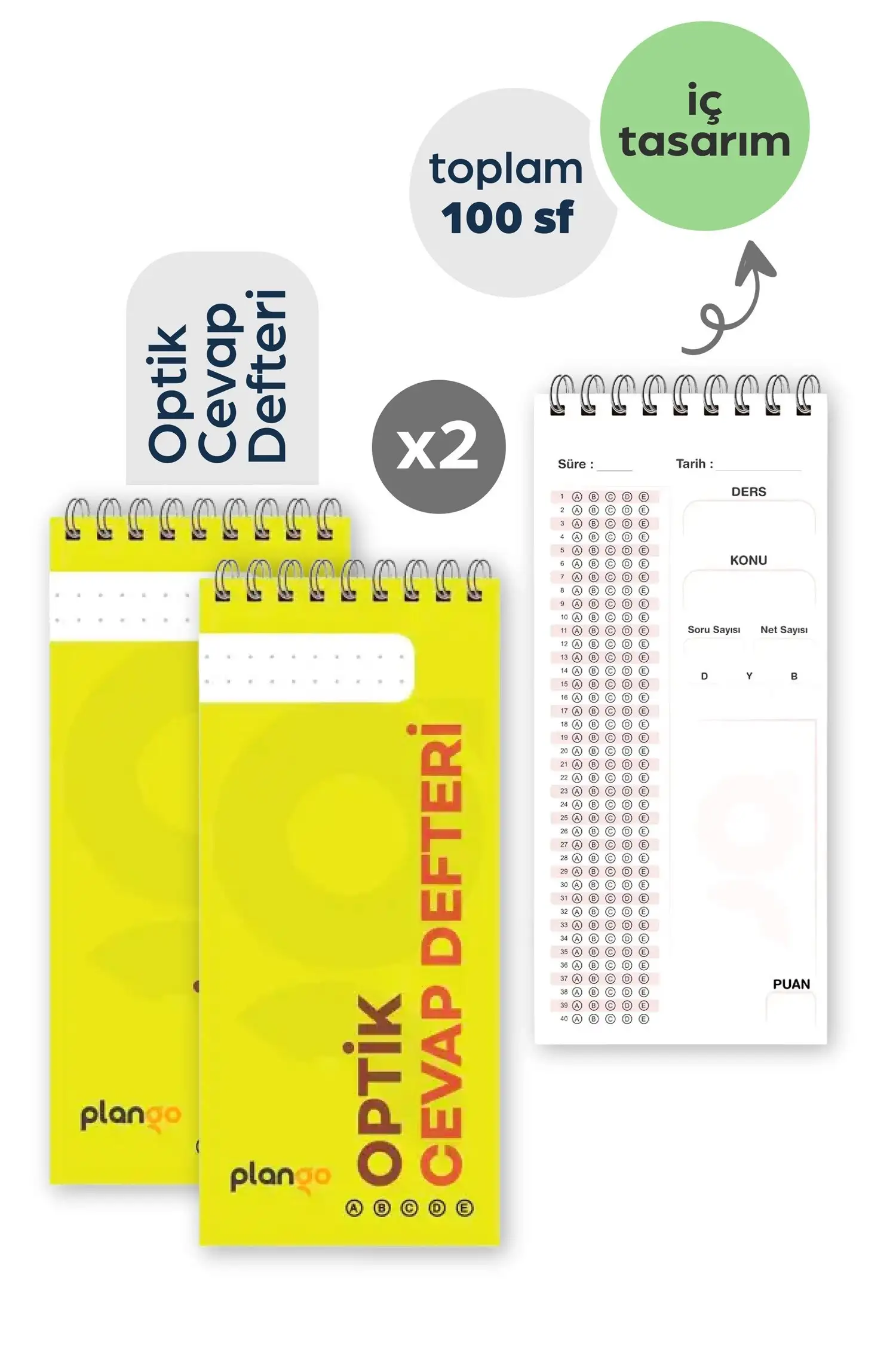 PLANGO Optik Cevap Defteri - SARI ( 2 Adet - 100 Sayfa)