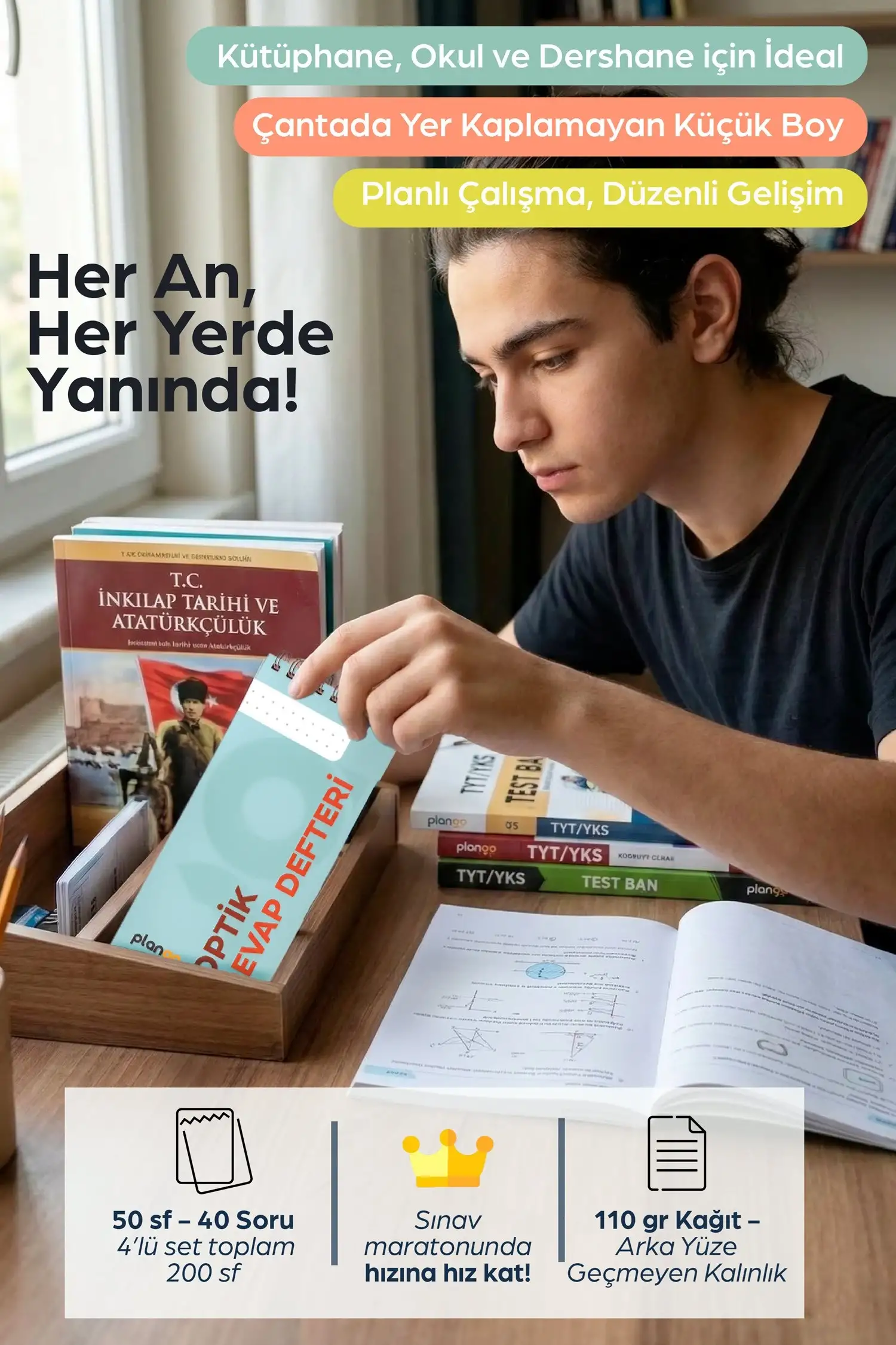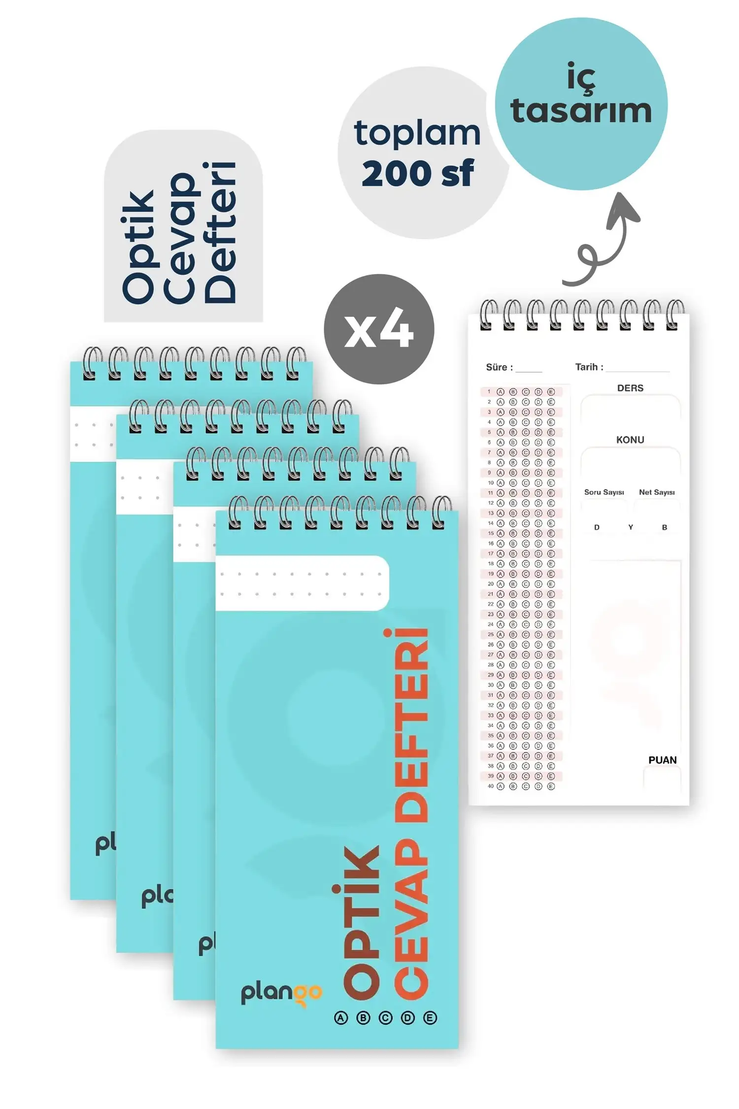 Optik Cevap Defteri TURKUAZ (4 Adet - 200 Sayfa) Sınava Hazırlık Optik Form Defteri - Plango