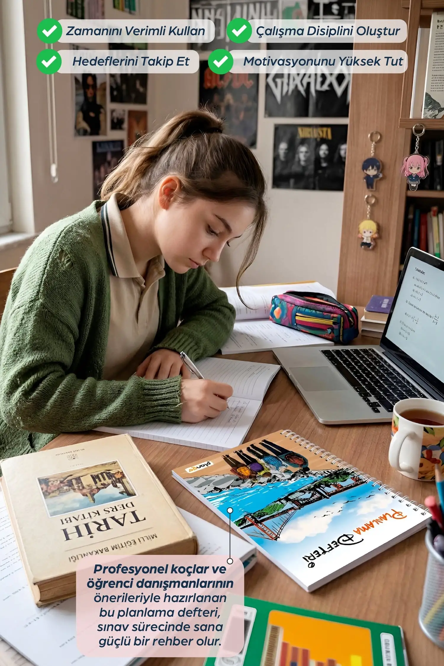 Profesyonel koçlar ve öğrenci danışmanları tarafından hazırlanan bu planlama defteri sayesinde okul ve sosyal hayatında hedeflerine daha kolay ulaşabileceksin.