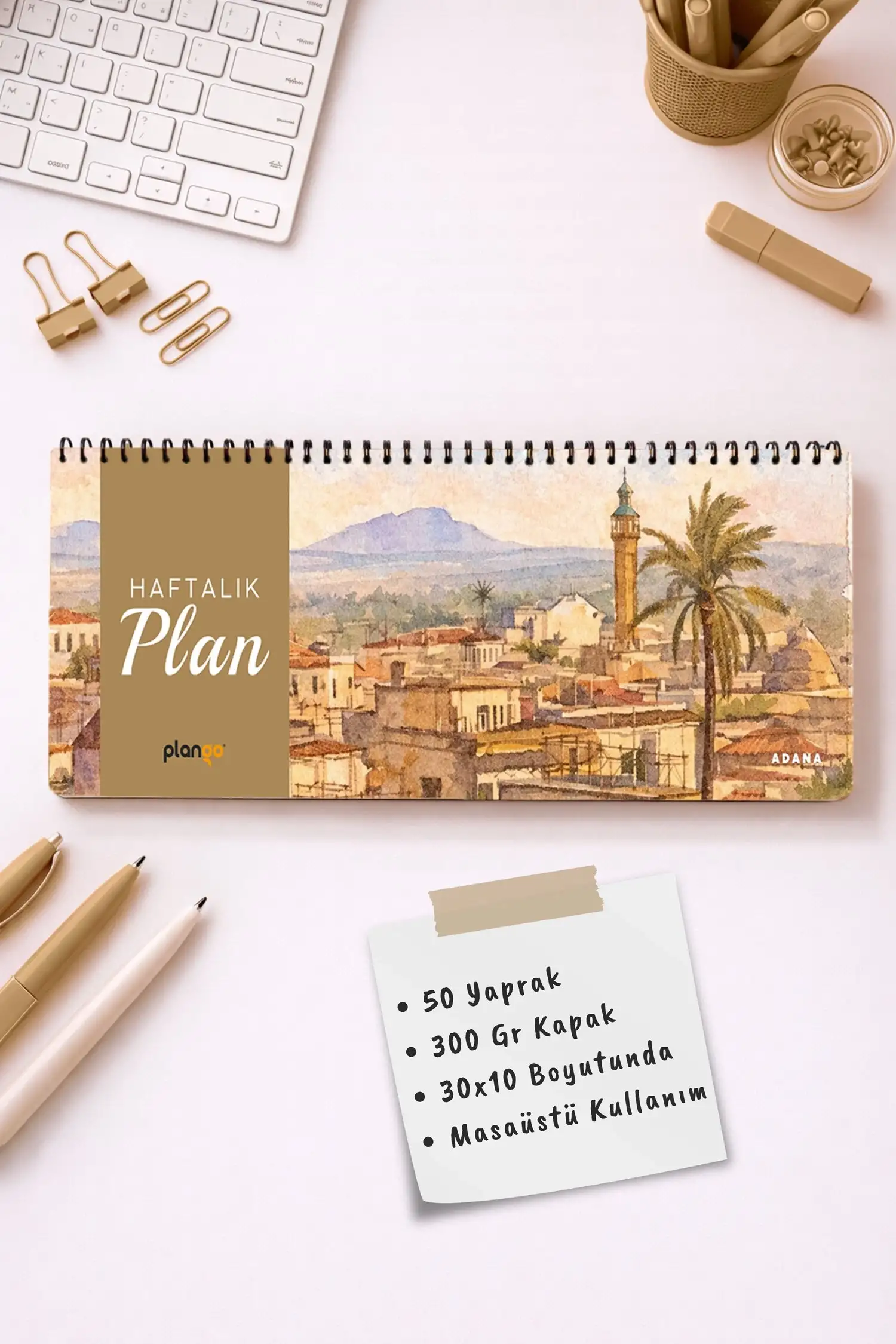 Tarihsiz Spiralli Haftalık Masaüstü Planlayıcı - ADANA - 10x30 cm Plango