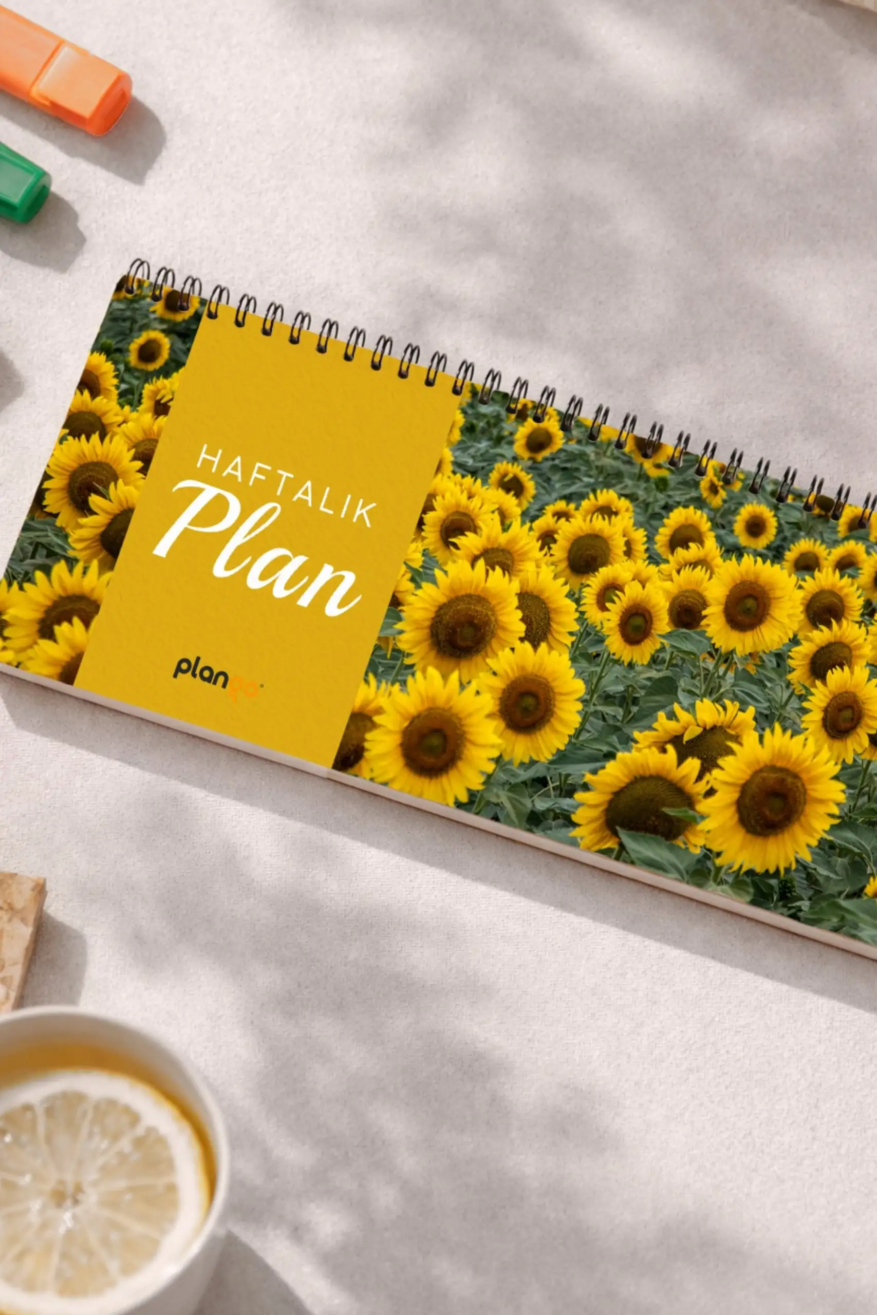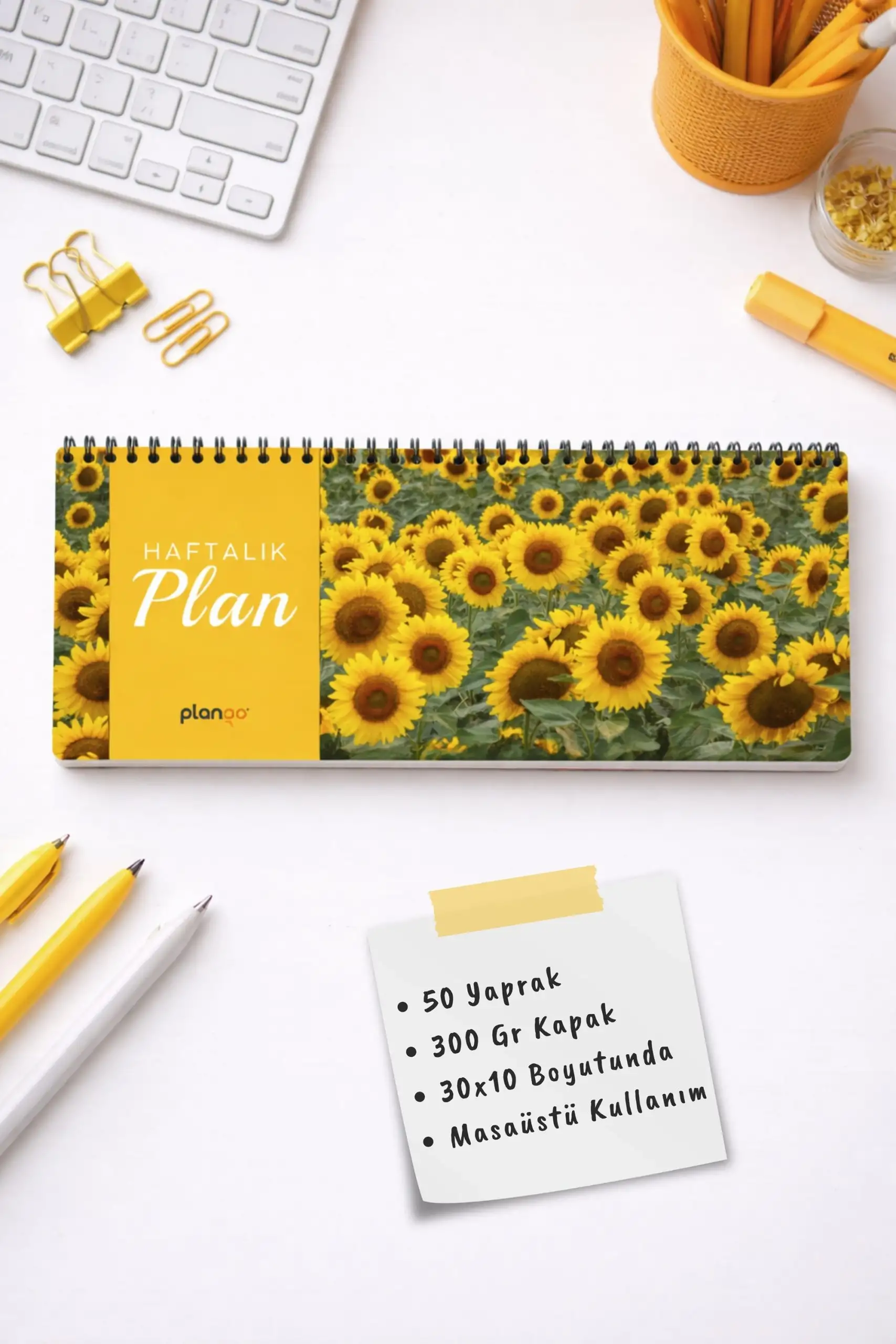Tarihsiz Spiralli Haftalık Masaüstü Planlayıcı - AYÇİÇEĞİ - 30x10 cm