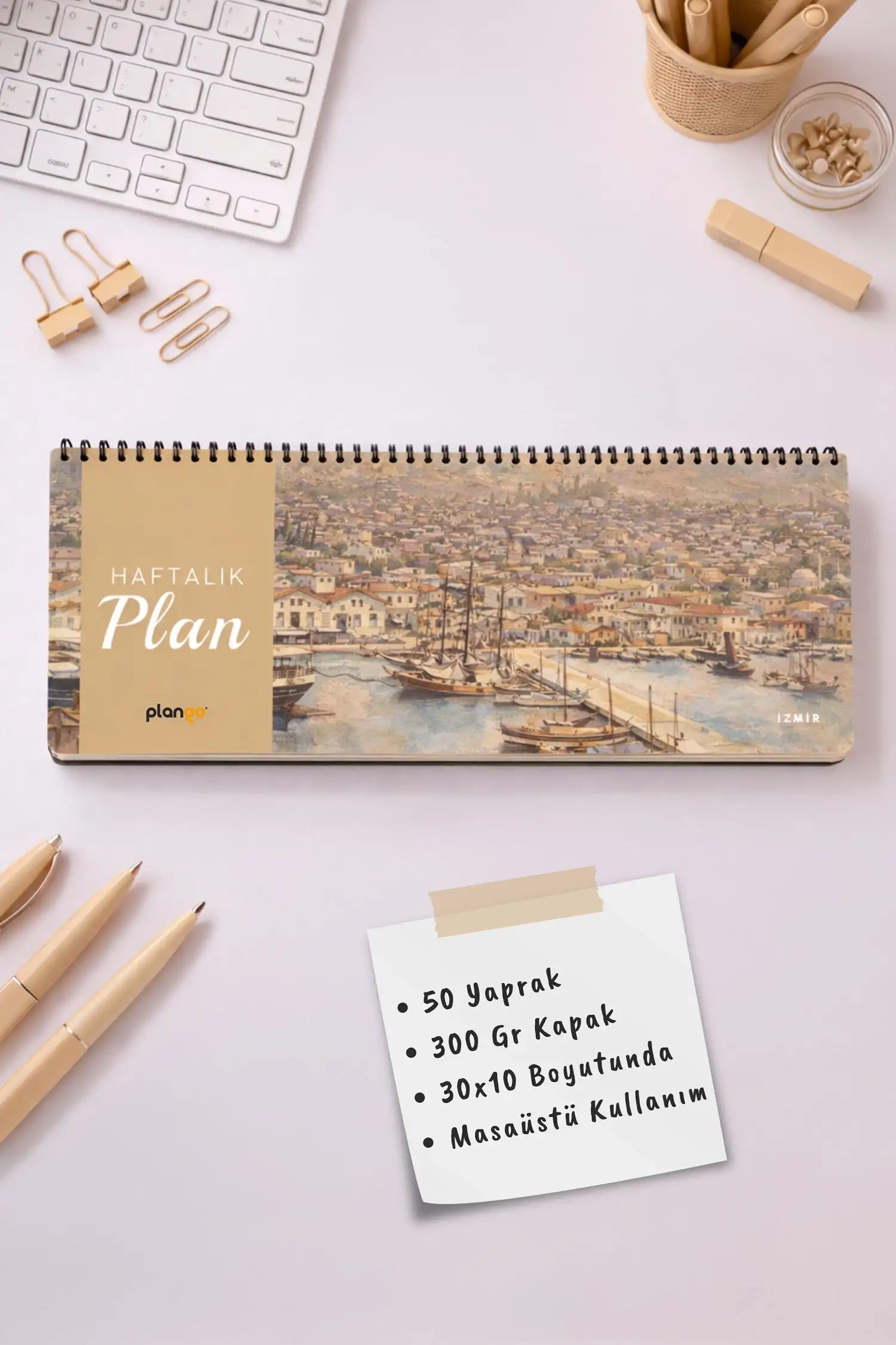 Tarihsiz Spiralli Haftalık Masaüstü Planlayıcı - İZMİR - 10x30 cm Plango