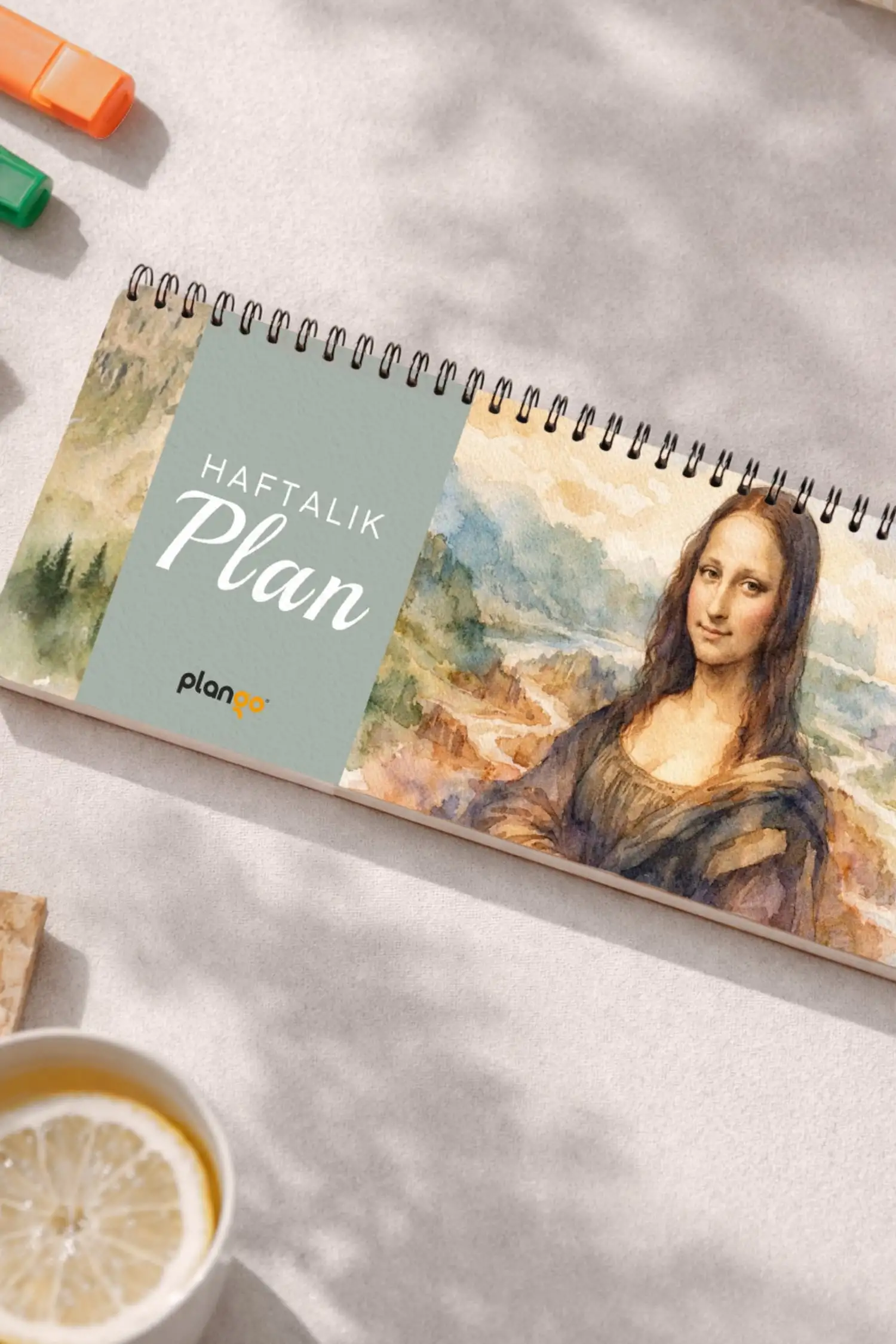 Tarihsiz Spiralli Haftalık Masaüstü Planlayıcı - MONA LİSA - 10x30 cm Plango