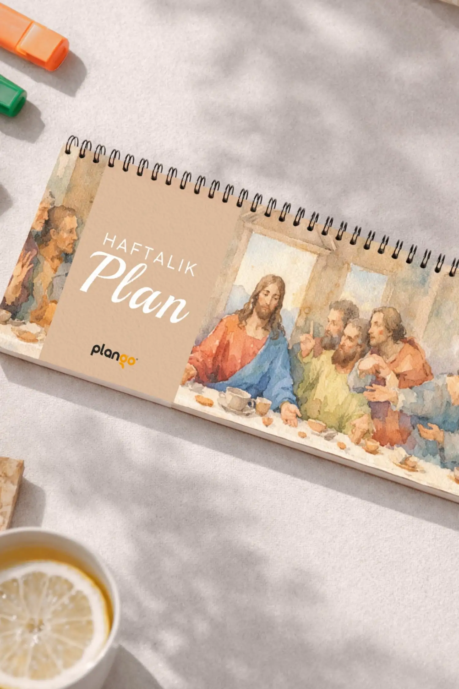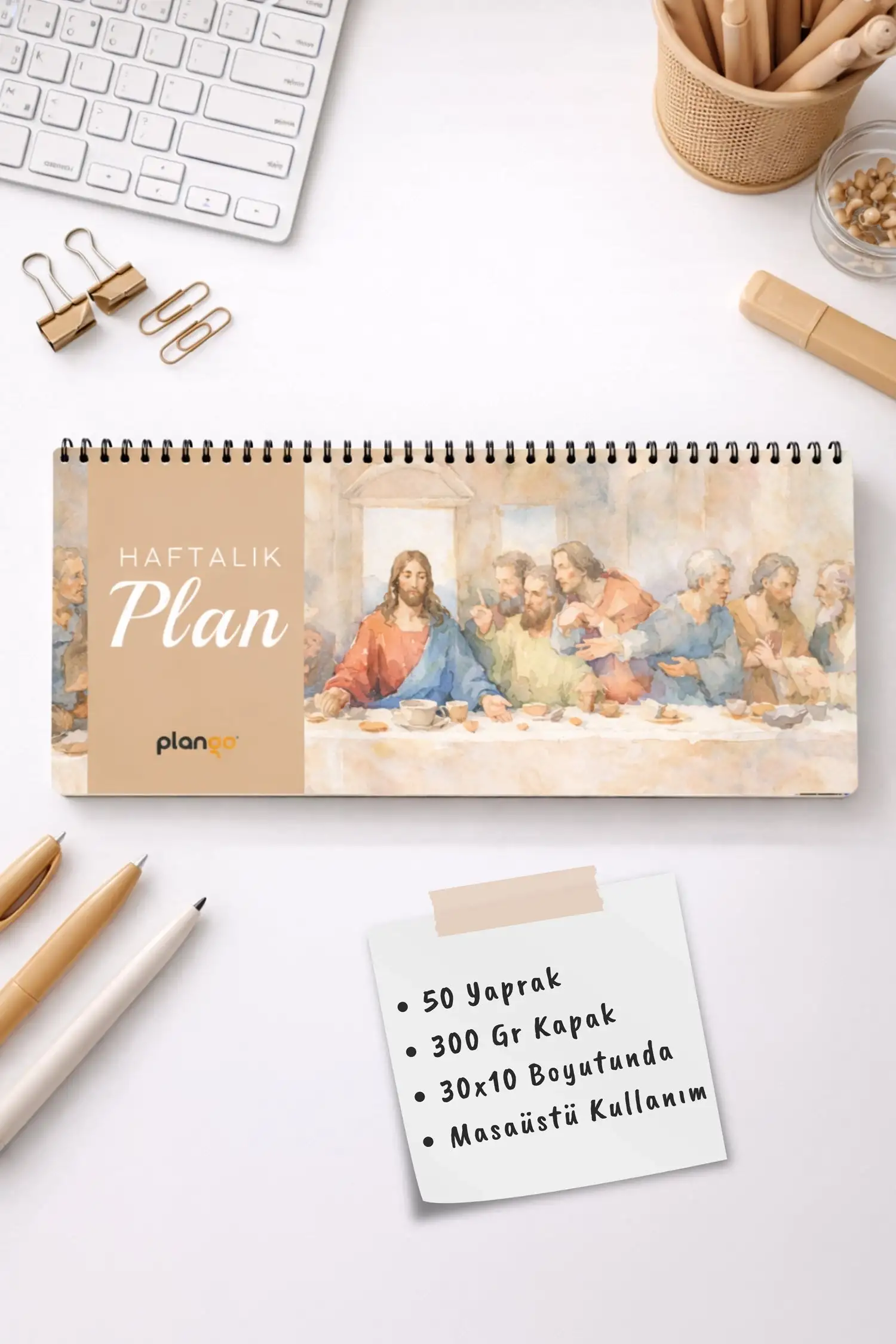 Tarihsiz Spiralli Haftalık Masaüstü Planlayıcı - SON AKŞAM YEMEĞİ - 10x30 cm Plango