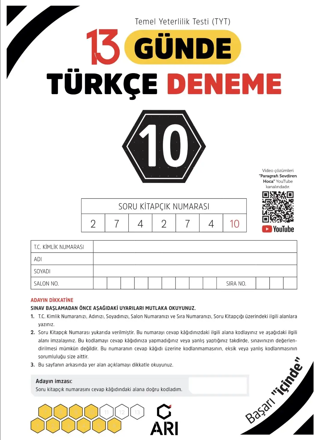 Öğretmen ve öğrencilerimiz tarafından en fazla tercih edilen Paragraf Kitabı, şimdi yeni, yeni tasarımı ile Türkçe branş denemesi ile ARI YAYINCILIK'ta. PARAGRAFI SEVDİREN HOCA'DAN